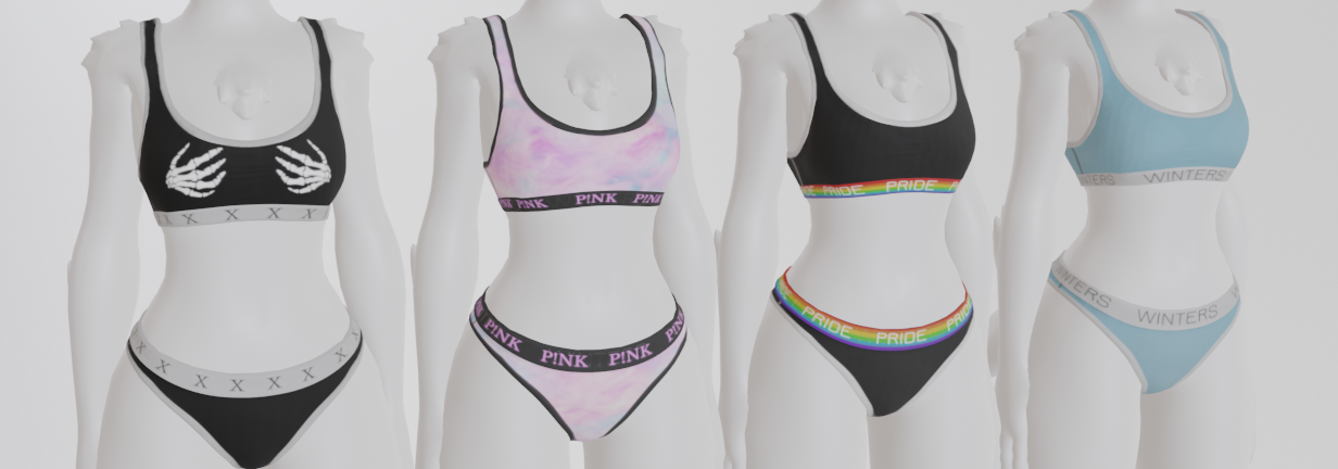 Includes blendshapes to match any body shape. The top and bottom add up to 10790 polygons. Works on different sizes of breast for each model.